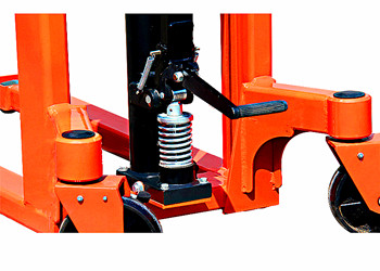門(mén)架采用優(yōu)質(zhì)型鋼焊接而成,剛性好、強(qiáng)度高。后輪使用帶剎車(chē)裝置的萬(wàn)向輪,可自由旋轉(zhuǎn)、轉(zhuǎn)動(dòng)輕便靈活,前后輪均以滾珠軸承安裝于輪軸上,轉(zhuǎn)動(dòng)靈活。車(chē)輪為尼龍輪,耐磨、耐用,且不易損壞工作地面。手動(dòng)液壓堆垛車(chē)