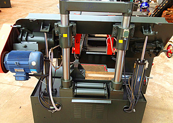 性能特點(diǎn):1,雙立柱結(jié)構(gòu),鋸架導(dǎo)向采用一圓一方導(dǎo)軌,保證導(dǎo)向精度,鋸削穩(wěn)定可靠;2,鋸床傳到機(jī)構(gòu)精密平衡校正,減少振動(dòng)確保鋸帶不易斷齒、拉齒;3,機(jī)械動(dòng)力清屑裝置,有效清理鋸齒間鐵屑,保護(hù)延長(zhǎng)鋸帶使用壽命;